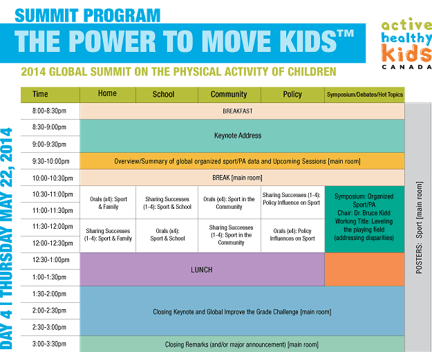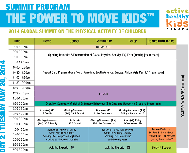Highlights of the Global Summit will include the release of the AHKC 10th Anniversary Report Card and International Report Cards, surveillance and plenary sessions, international best practice workshops, research symposia and poster presentations. Program sessions will drill deeper into the relationship and intersection of childhood behaviours that comprise physical activity (Sport & Recreation, Active Play, Active Transportation, Sedentary Behaviour) and the critical influences on childhood physical activity (School, Home, Community, Policy). Not to be missed will be the high profile keynote speakers, and a culminating Call to Action.